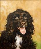 This abstract has "creepy crawlers" abounding in a tranquil flower patch. This is in a black wooden frame.